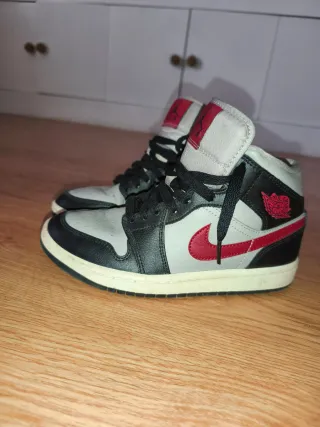 Zapatillas altas de la marca Jordan en color negro con detalles en rojo. - Diseño deportivo. - Cierre de cordones. - Logo de Jordan en la lengüeta. están bastante usadas y están demasiado bien para el tiempo que tienen