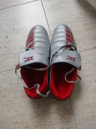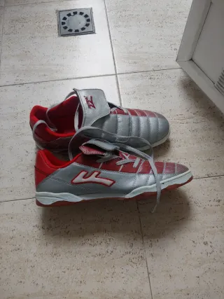 Zapatillas deportivas FUTSAL plateadas y rojas tal