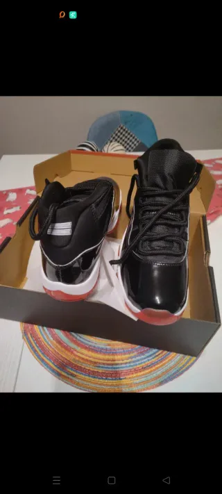 Zapatillas deportivas Jordan de alta calidad. Tiene algunas marcas pero están muy bien conservadas - Diseño moderno en negro con detalles rojos. - Suela blanca con diseño distintivo. - Cierre de cordones.
