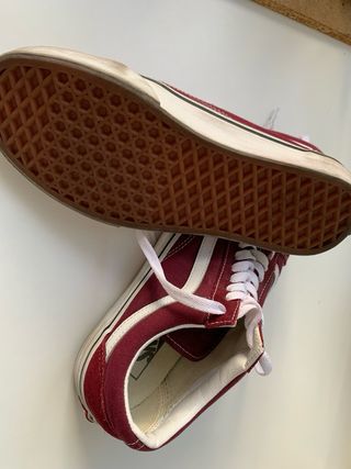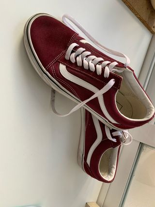 Zapatillas Vans Old Skool en color rojo, casi nuevas. - Modelo clásico de Vans. - Parte superior de ante y lona. - Suela de goma vulcanizada.