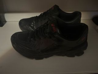 Zapatillas deportivas ASICS con un diseño moderno y dinámico. - Combinación de colores negro y rojo. - Cierre con cordones. - Suela con amortiguación.