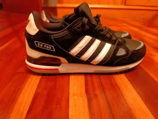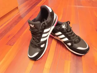 Zapatillas deportivas Adidas ZX 750. - Las vendo por equivocación de talla. - Diseño en color negro con detalles en rojo. - Tres rayas blancas icónicas de Adidas en los laterales. - Logo de Adidas en la lengüeta y el talón.