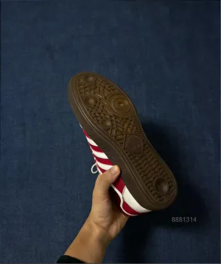 Zapatillas Adidas Samba con detalles en rojo. - Diseño clásico. - Franjas laterales icónicas. - Suela de goma.