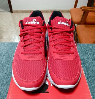 Zapatillas deportivas Diadora en perfecto estado, listas para estrenar. - Diseño moderno en color rojo con detalles blancos. - Suela blanca de goma. - Cierre con cordones. - Talla 44-44.5