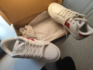 Zapatillas de la marca Ecoalf en talla 39. Rojas. - Diseño moderno y versátil. - Piel. - Solo se han puesto una vez. - Cordones blancos para cambiar.