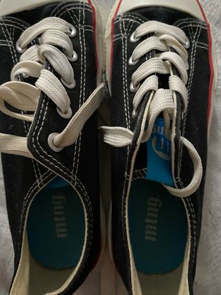 Zapatillas de lona Mustang en color negro con detalles en rojo. - Cierre de cordones. - Suela de goma. - Logo de la marca en la plantilla. Talla 36 pero quedan chicas , a una 34
