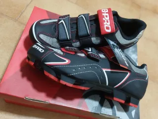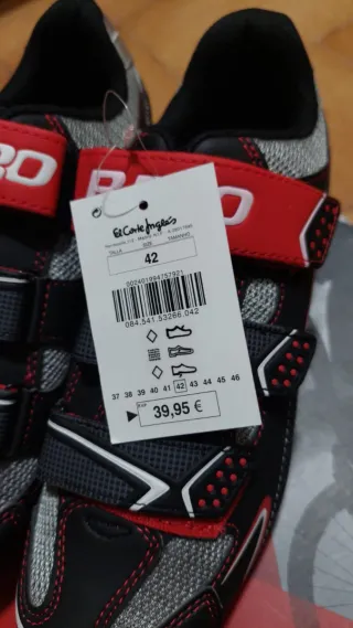 Zapatillas de ciclismo en talla 42. Diseñadas para ofrecer comodidad y rendimiento. - Sin estrenar - Cierre de velcro ajustable. - Suela con buen agarre. - Combinación de colores negro y rojo.
