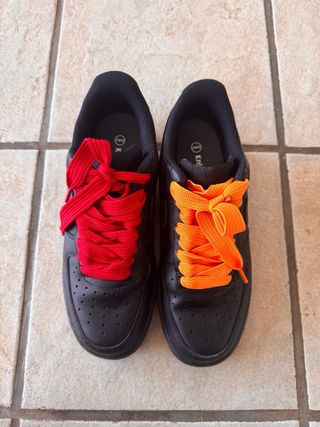Deportivas negras niño cordones rojo y naranja