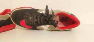 Zapatillas de caña media con un diseño icónico. - Combinación de colores negro y rojo. - Cierre con cordones negros. - Suela blanca con detalles rojos.
