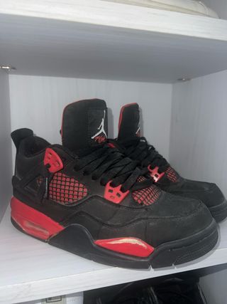 Zapatillas deportivas Jordan 4 con un diseño llamativo. - Combinación de colores negro y rojo. - Detalle de malla en los laterales. - Logo de Jordan en la lengüeta.