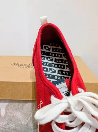 Zapatillas de lona Pepe Jeans en color rojo. Perfectas para un look casual. - Cierre con cordones blancos. - Detalle de logo en el lateral. - Suela de goma blanca.