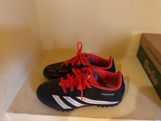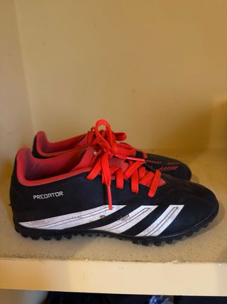 Zapatillas deportivas Adidas Predator para niño. - Diseño en color negro con detalles en rojo. - Cierre con cordones. - Logo de Predator en el lateral. Talla 33
