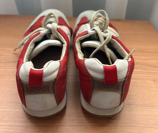 Zapatillas altas de estilo retro con detalles en rojo y blanco. - Diseño clásico de caña alta. - Combinación de cuero y ante. - Cordones blancos. Puestas DOS veces. Estan practicamente nuevas.