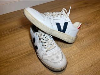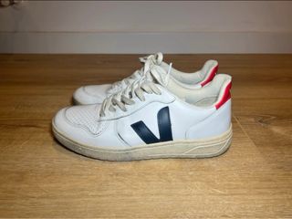 Zapatillas Veja V-10 en color blanco con detalles en rojo. - Diseño deportivo y moderno. - Logo lateral en contraste.