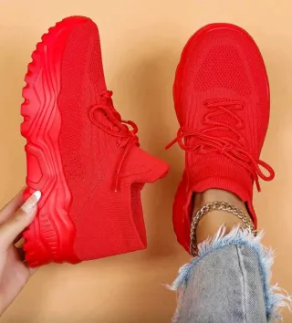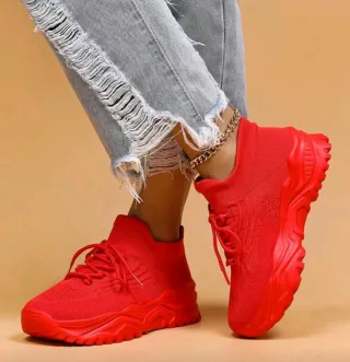Zapatillas deportivas de color rojo. - Diseño moderno. - Suela gruesa.