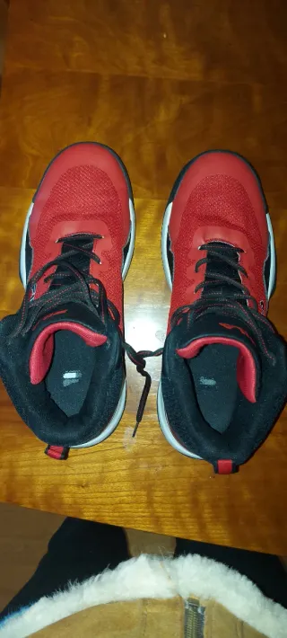 Botas de baloncesto para niño son un 35 de número pero calzan pequeñas, osea pa un 33 o 34, ESTAN SIN ESTRENAR SON NUEVAS. Me costaron 22€ y la talla es pequeña por eso las ofrezco en 15 €. - Combinación de colores rojo y Negro -