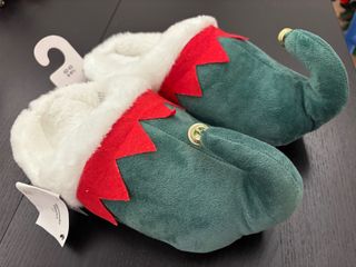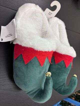 Zapatillas a estrenar, con etiquetas. Con diseño de elfo, perfectas para la temporada navideña. Son cómodas y divertidas. - Forro interior suave y cálido. - Detalle de cascabel dorado en la punta. - Borde de peluche blanco y detalles rojos festivos. - Talla 42-43