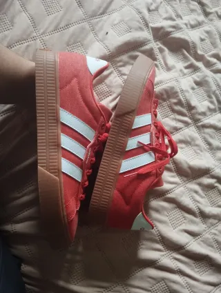 Zapatillas deportivas Adidas con un diseño moderno. - Parte superior de malla transpirable. - Detalle de tres rayas blancas en los laterales. - Talón con acento en color rojo. Se venden por no usar, están prácticamente nuevas, puestas 3 veces . Envío sin problema.