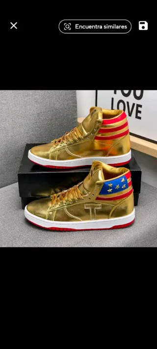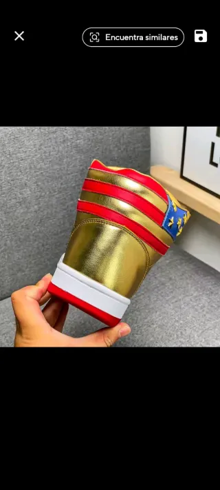 Zapatillas de caña alta con un llamativo diseño. - Acabado metalizado en color dorado. - Detalles en rojo y azul. - Cierre con cordones.