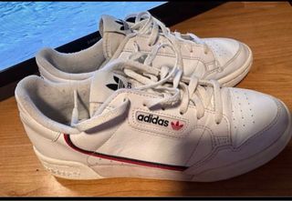 Zapatillas de lona estilo clásico, perfectas para el día a día. - Color blanco con detalles rojos. - Cierre de cordones. - Suela de goma. No estan rotas, solo tengo que lavarlas, lo que tienen es suciedad