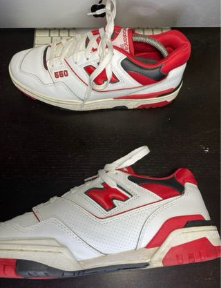 new balance 550, color rojo, en muy buenas condiciones debido a su poco uso.