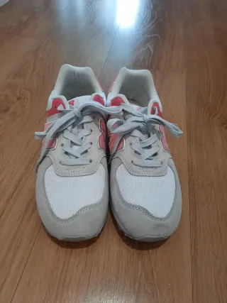 Zapatillas deportivas de la marca New Balance. - Diseño en color rosa y blanco. - Talla 38.