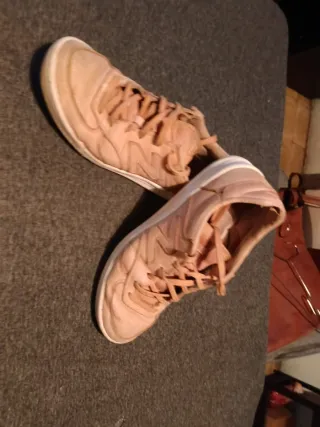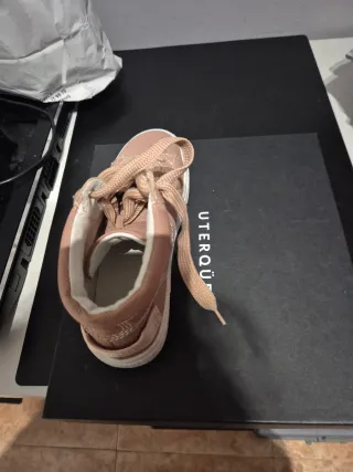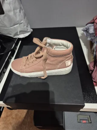 Zapatillas de ante en color rosa con detalles plateados. - Cierre con cordones. - Suela con efecto desgastado pero sin usar Tallan muy pequeño.