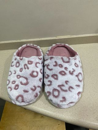 Comodísimas zapatillas de estar por casa con un suave tejido. - Estampado de leopardo en tonos rosas y blancos. - Interior forrado para mayor confort. - Número 38 - Muy blanditas y calientes - Me las he puesto poquísimo como se puede apreciar