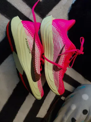 Zapatillas de running Nike ZoomX en llamativos colores rosa y amarillo solo puesto 2 veces - Diseño deportivo. - Cordones a juego.