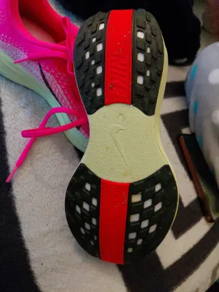 Zapatillas de running Nike Vaporfly en tonos blancos y rosas vibrantes, con suela de carbono. - Diseño moderno y ligero. - Detalles en color fucsia y lila. - Zapatillas con menos de 40km de uso. - Como nuevas - Precio original 250€ - Negociable