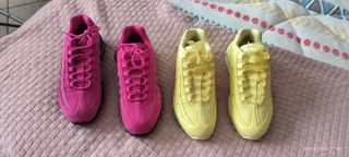 Par de zapatillas Nike Air Max 95. - Color rosa vibrante. - Color amarillo pastel. - Diseño icónico de capas. - Cierre con cordones. Sin caja Rosas 90 eur Amarillas 100 eur