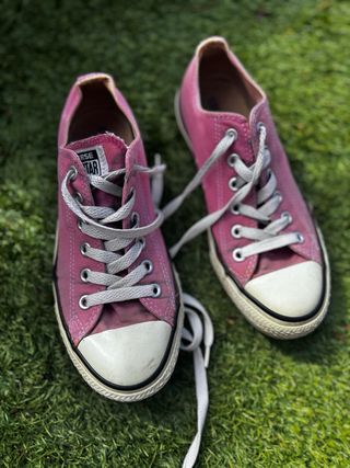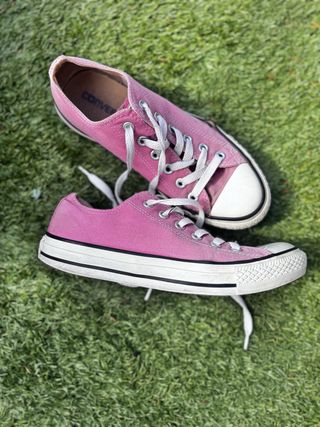 Zapatillas Converse bajas de color rosa. - Cordones blancos. - Suela blanca con detalles negros. - Logo de Converse en la plantilla.