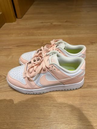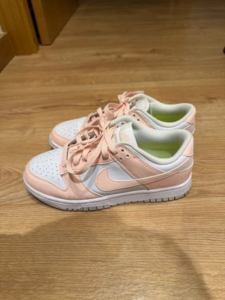 Zapatillas Nike Dunk Low en un bonito tono rosa pastel y blanco. Perfectas para añadir un toque de color a tu look. - Diseño bajo. - Cierre con cordones. - Suela de goma.