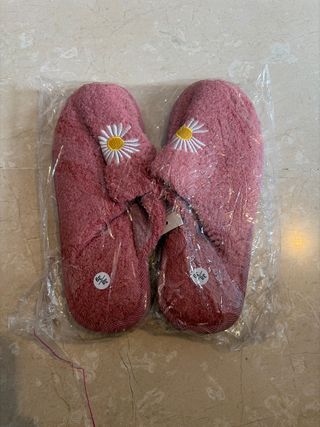 Comodísimas zapatillas de casa con un bonito diseño de margarita bordada. - Talla 38/39. - Color rosa. - Material suave y cálido.