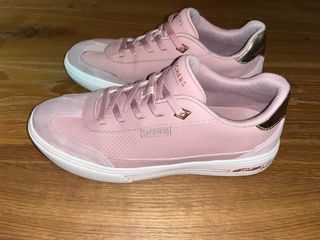Zapatillas Guess con un diseño moderno y llamativo. - Estampado de monograma Guess. - Detalles en color rosa metalizado. - Cierre con cordones negros.