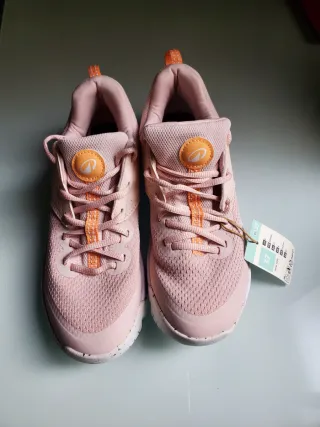 Zapatillas deportivas ASICS en tonos rosas y blancos. Perfectas para el día a día. Las vendo porque no le quedaban y no las pude devolver - Diseño con paneles superpuestos. - Cierre con cordones blancos. - Detalle de logo en el lateral.