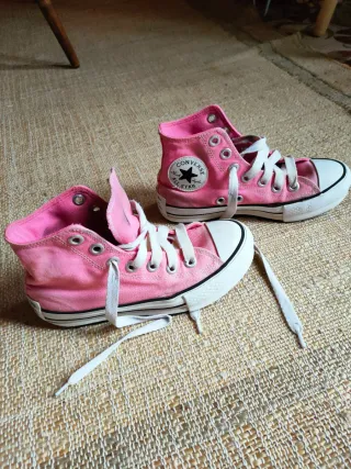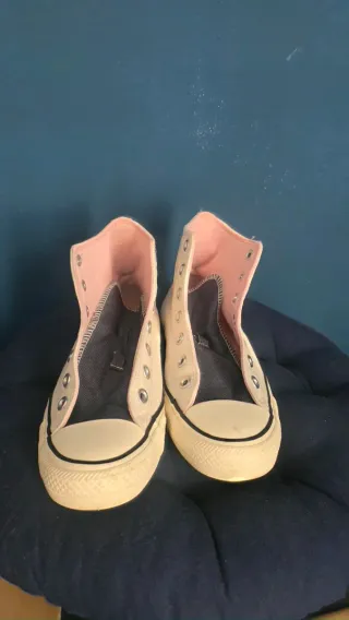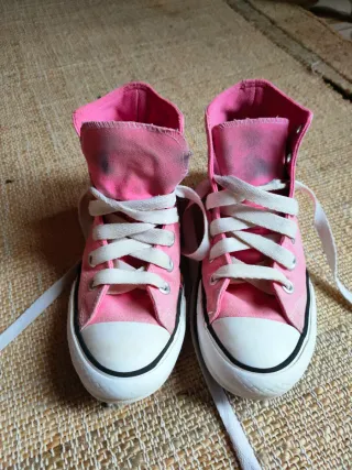 Zapatillas altas de lona con detalles en rosa. 20 euros - Marca: Converse - Color: Blanco y rosa - Estilo: Unisex Y Nike negras Jordan num 38, 40 euros.