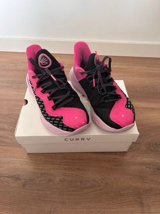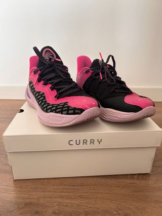 Zapatillas de baloncesto con un diseño llamativo en negro y rosa. - Under Armour por Stephen Curry - Cierre con cordones. - Detalle de patrón en la suela. - Cuello acolchado para mayor comodidad.