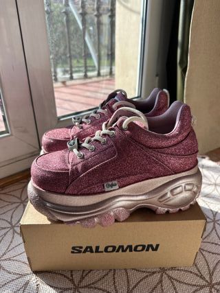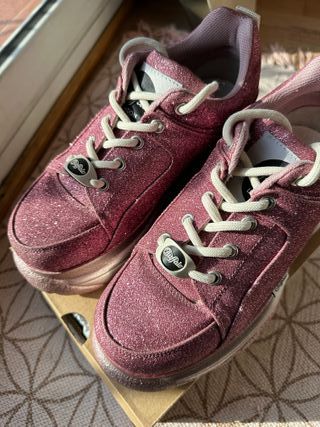 Zapatillas Buffalo London de plataforma con glitter rosa. Modelo icónico estilo Y2K. Talla 38 Usadas muy pocas veces, estado muy bueno. Ideales para looks Y2K, rave, festival, streetwear o para coleccionistas de Buffalo. Las vendo porque antes era una tía chulísima, pero ya no tanto 😔