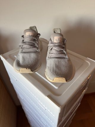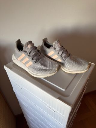 Zapatillas deportivas Adidas Swift Run en color gris con detalles en rosa. - Diseño moderno y ligero. - Muy cómodas para el día a día. - Usadas pero muy bien cuidadas