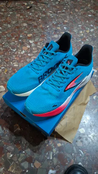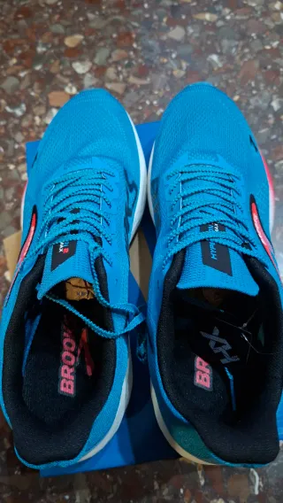 Zapatillas de running Brooks Hyperion Max 2. - Diseño ligero y transpirable. - Combinación de colores azul y rosa vibrante. - Suela con amortiguación para mayor comodidad.