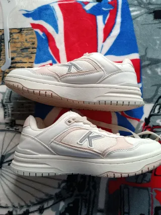 Zapatillas deportivas de la marca Kelme, combinando blanco y rosa. - Diseño deportivo. - Cierre con cordones. - Detalle de logo en los laterales.