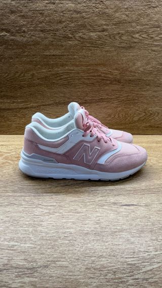Zapatillas deportivas New Balance en tonos rosa y blanco, en excelente estado. - Diseño moderno y cómodo. - Combinación de materiales de calidad. - Logo distintivo de la marca.