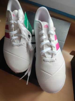 Zapatilla adidas, blanca y rosa fucsia a estrenar, N.39.5