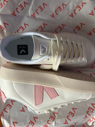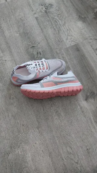 Zapatillas deportivas de mujer con un diseño moderno y cómodo. - Combinación de colores blanco y rosa. - Tejido transpirable. - Suela flexible. Nuevas a estrenar