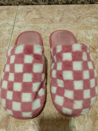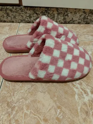 Comodísimas zapatillas de estar por casa con un diseño a cuadros. - Material suave y cálido. - Diseño a cuadros rosa y blanco.