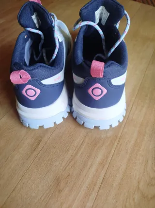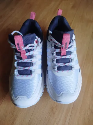 Zapatillas deportivas unisex Izas, ideales para actividades al aire libre. - Diseño moderno en blanco y rosa. - Cierre de cordones. - Suela con buen agarre. -Nuevas como observara en fotos usadas una sola vez equivocó en número