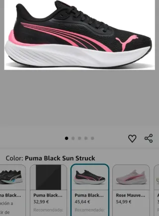 Zapatillas deportivas Puma con un diseño moderno y llamativo. - Combinación de colores negro y rosa. - Suela blanca con detalles. - Logo de Puma visible.