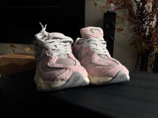 Zapatillas New Balance 9060 en tonos rosados y grises. - Diseño moderno y cómodo. - Detalles en gamuza y malla. - Suela robusta para mayor amortiguación.