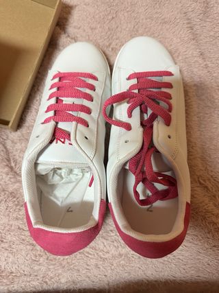 Zapatillas de la marca Mirambo en color rosa, completamente nuevas. - Cierre con cordones blancos. - Suela blanca con detalle negro.